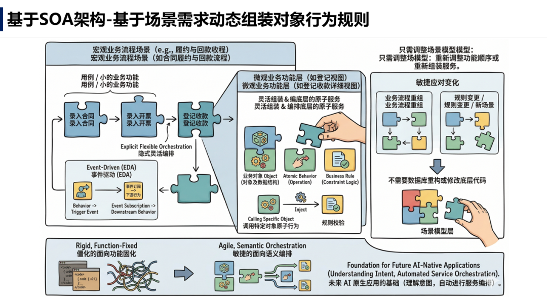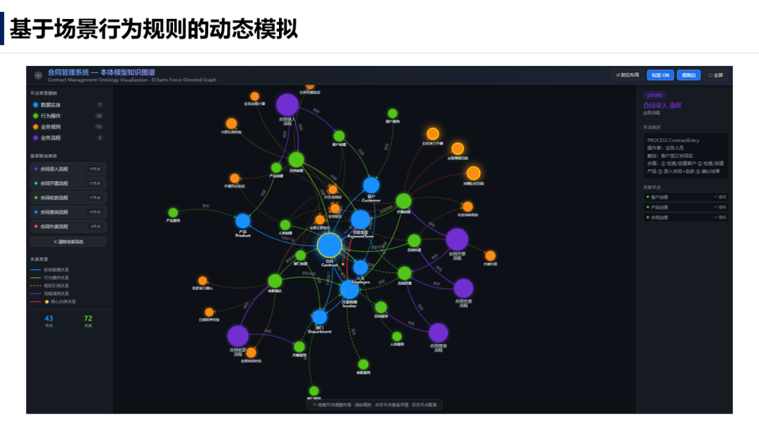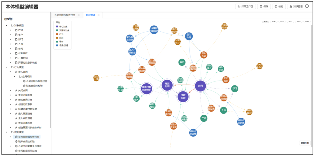 我们可以基于不同的场景流程,类似于合同录入合同开票,让他一步一步动态的模拟整个对象行为规则的调用关系在前面,我也专门有演示视频来讲这一块。可以参考下我前面的公众号文章详细说明。