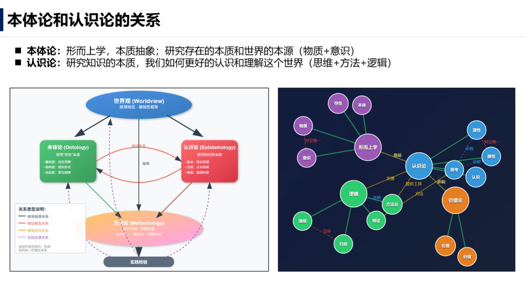 本体论最终只是一个结果。更核心的是我们分析研究事物的方法,但是你脱离本体论坛认识论也没有意义。因为所有我们对世界的认识的方法,最终它都要有一个抽象模型结果的沉淀,所以认识论和本体论这两者本身是相辅相成的。