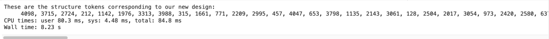 现在我们已经有了一个具有一定结构变化的骨架,同时它在GFP的受限位点上也保持一致。接下来我们希望设计一个能折叠成该结构的氨基酸序列。我们可以使用上一次的生成结果(即原始提示加上新的结构标记)作为新的提示,再次调用ESM3。