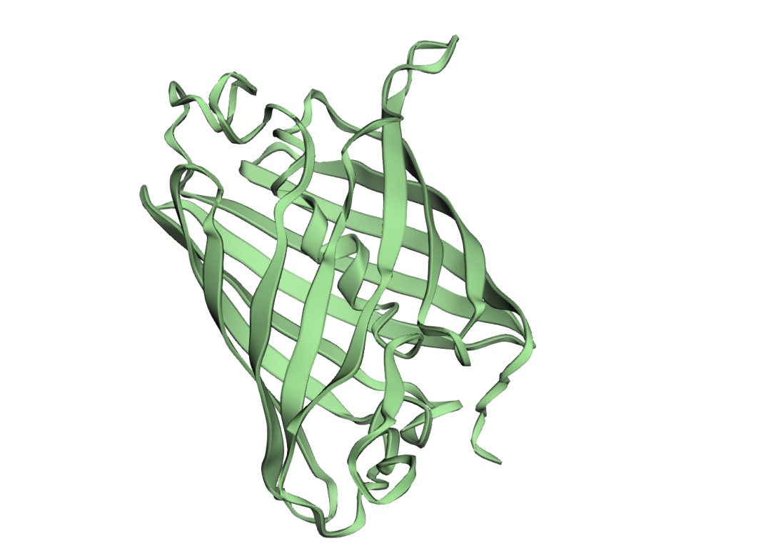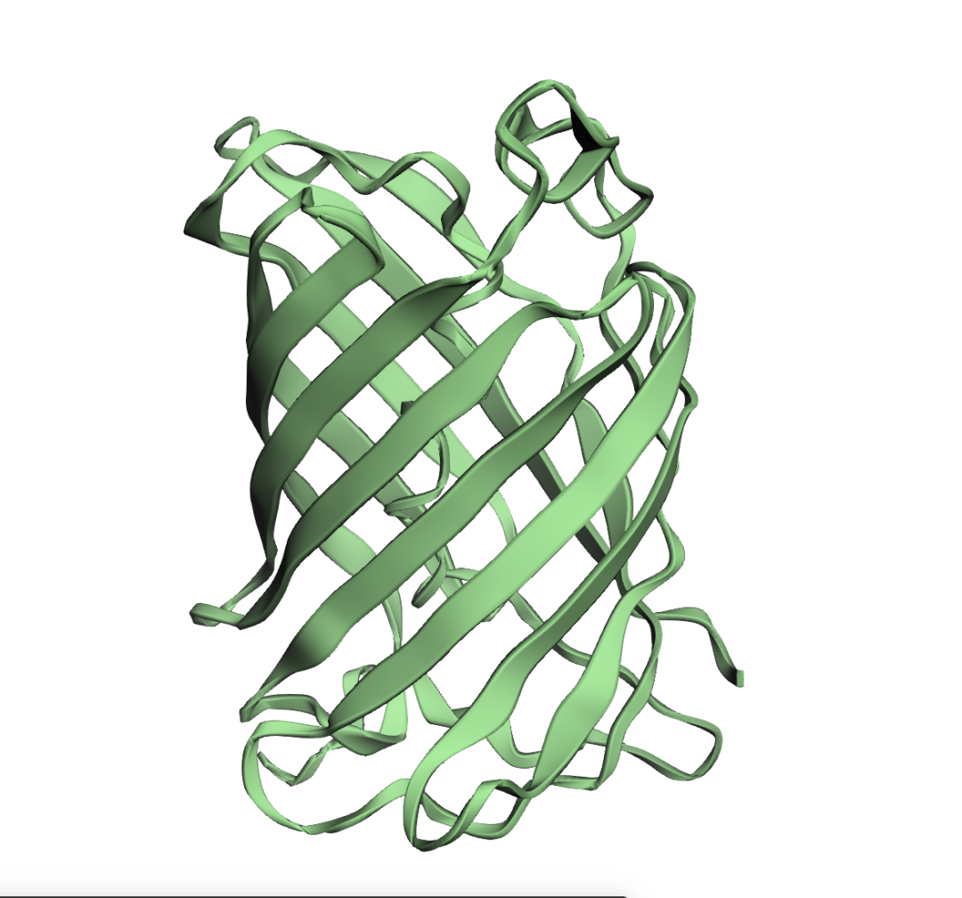 现在让我们可视化生成的结构。这很可能会呈现出一个熟悉的GFP结构:围绕α螺旋形成的β桶。