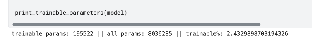 f"trainable params: {trainable_params} || all params: {all_param} || trainable%: {100 * trainable_params / all_param}"