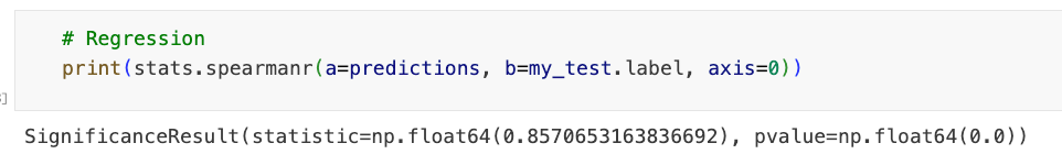 print(stats.spearmanr(a=predictions, b=my_test.label, axis=0))