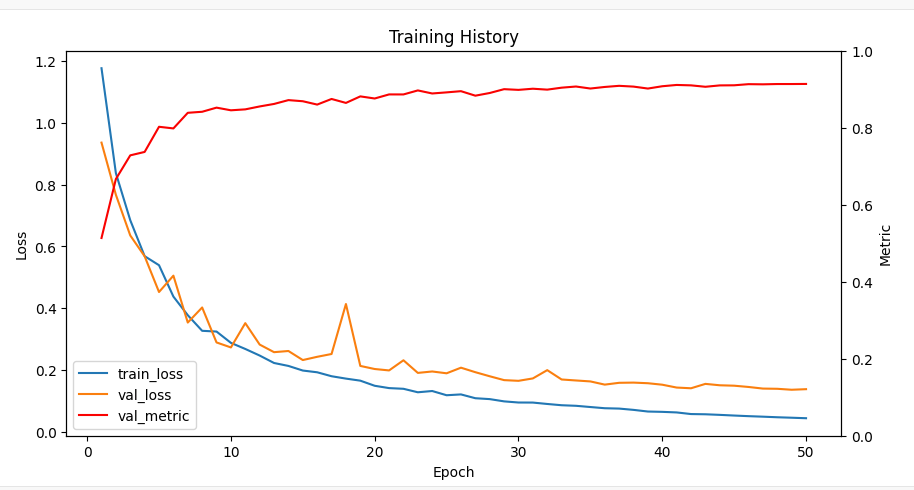 # Get loss, val_loss, and the computed metric from history