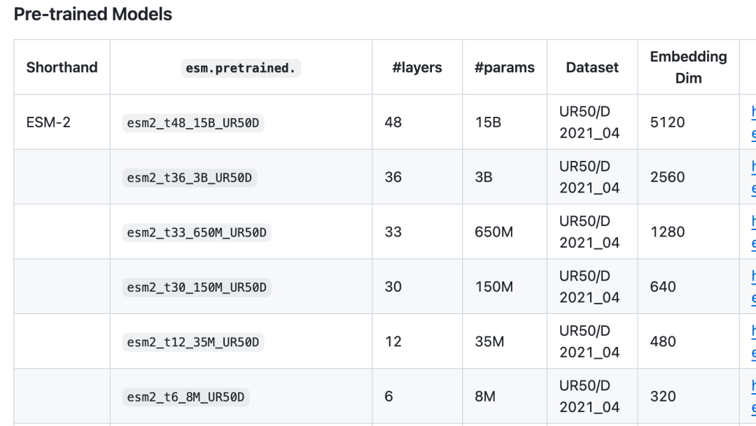 其次本次我们是为了演示起来比较方便,我们使用esm2家族最小的蛋白质语言模型:esm-8m