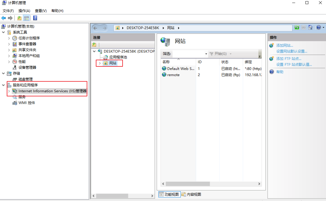 3️⃣ 再右键我的电脑 → 管理 → 服务和应用程序 → IIS 管理器 4️⃣ 网站 → 选择之前创建的FTP服务 → 双击FTP授权规则 → 添加允许规则