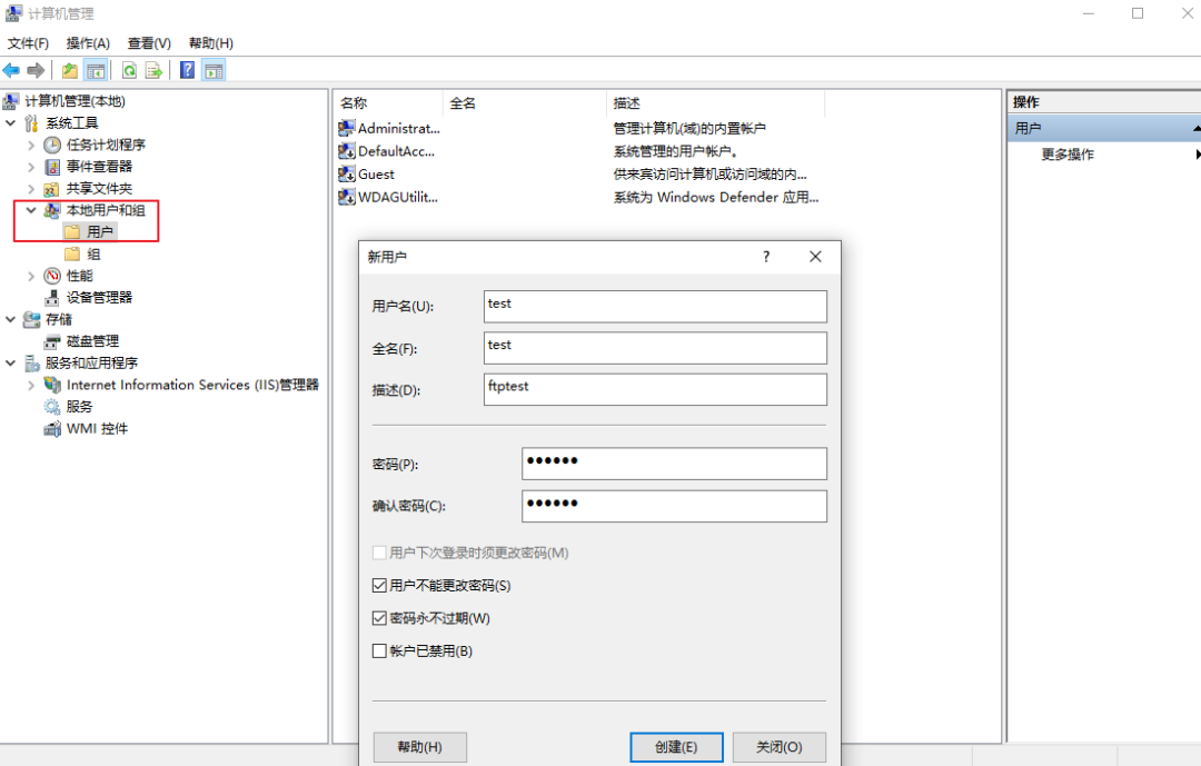 1️⃣ 右键 → 新建用户 2️⃣ 设置用户名和密码