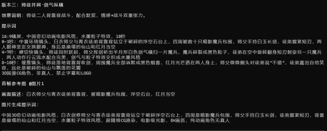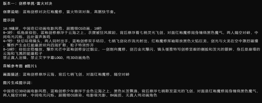 第一步:描述创意 → “一段古风武侠打斗”