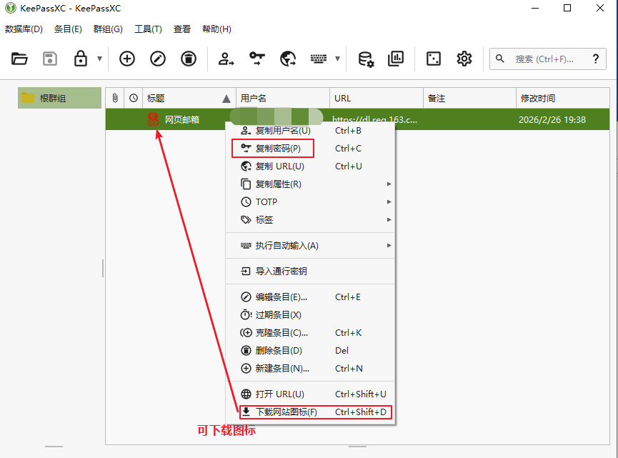 3️⃣ 下载图标:条目URL里点击下载或右键条目选择下载网站图标