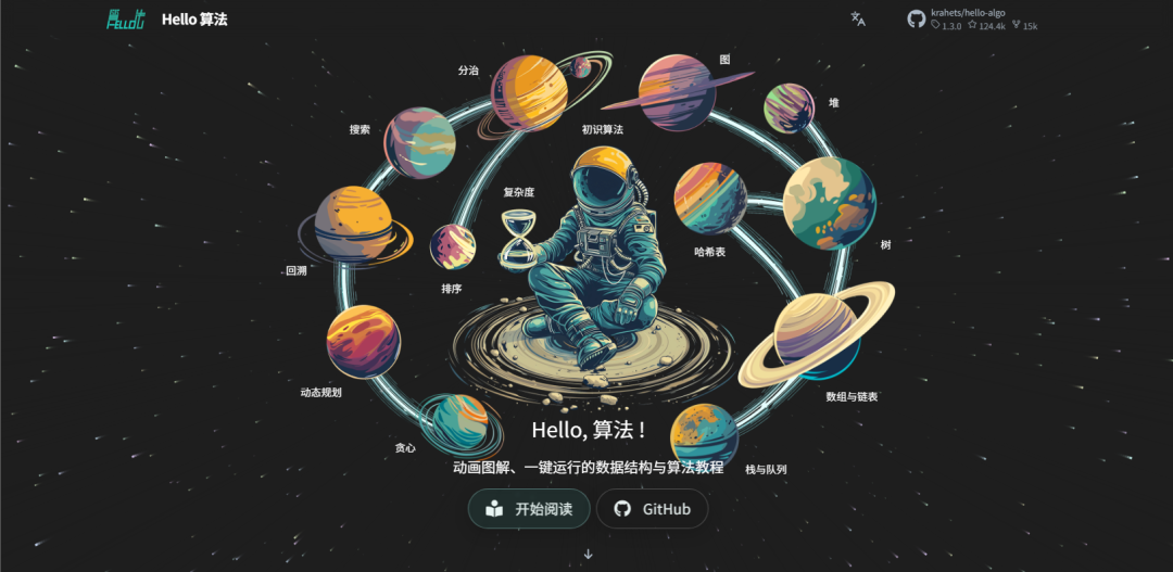 作者是 Krahets,一个开发者 在GitHub上已经攒了很高的热度,关键是完全免费开源。