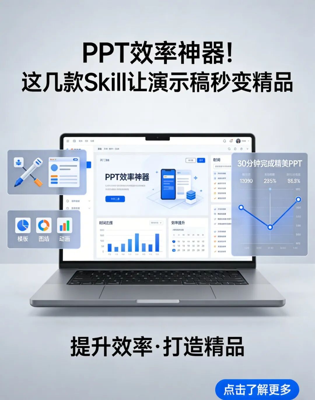 原标题“PPT Skill之王 !分享几个能帮你做出精美PP的Skill”优化为“PPT效率神器!这几款Skill让演示稿秒变精品”,核心调整: