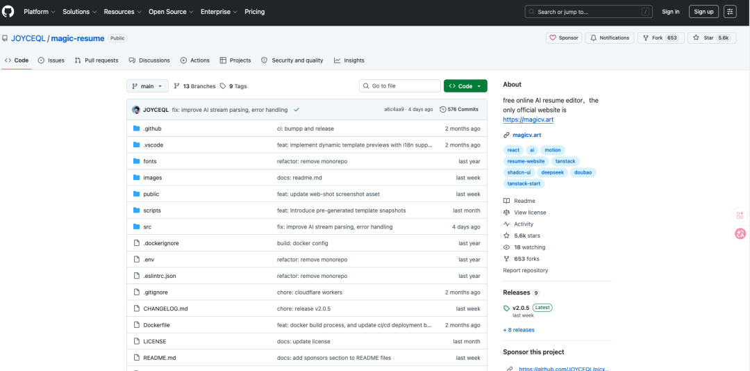 Magic Resume是GitHub上热度持续攀升的开源AI简历编辑器,基于TanStack Start、TypeScript技术栈构建,主打隐私优先与AI辅助能力。