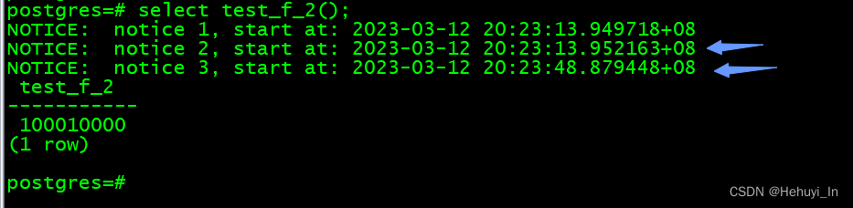 raise notice 'notice 2, start at: %',clock_timestamp();