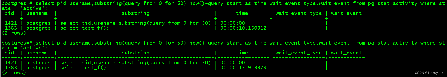 开发反馈pg中某函数执行时间很长,超过30分钟,想看看慢在其中哪一段SQL。但是如果直接通过pg_stat_activity查询,只能看到上层执行函数的语句,而不像oracle和SqlServer能看到当前在执行什么。咨询群友们得到了几种方法,下面测试和对比一下。