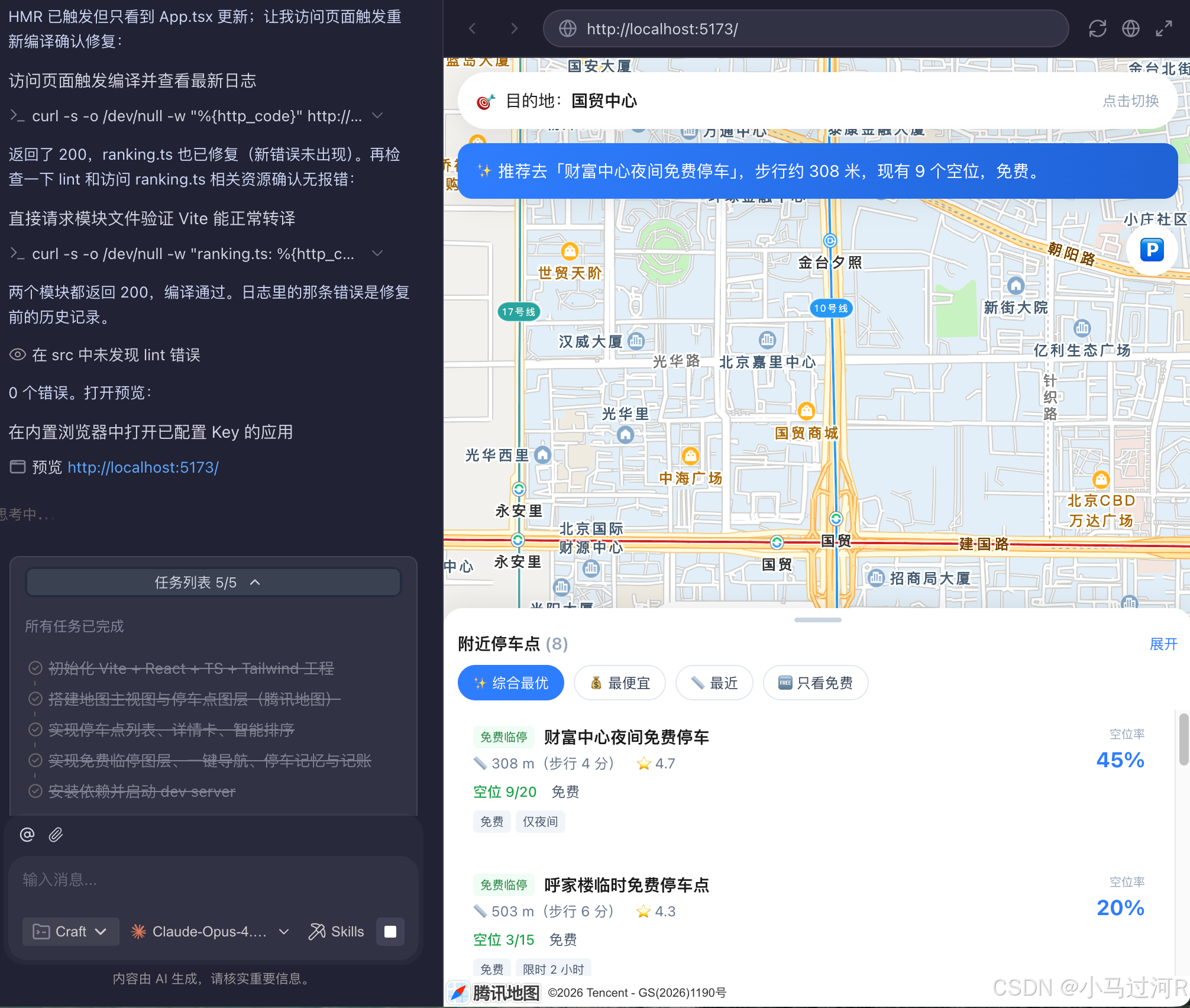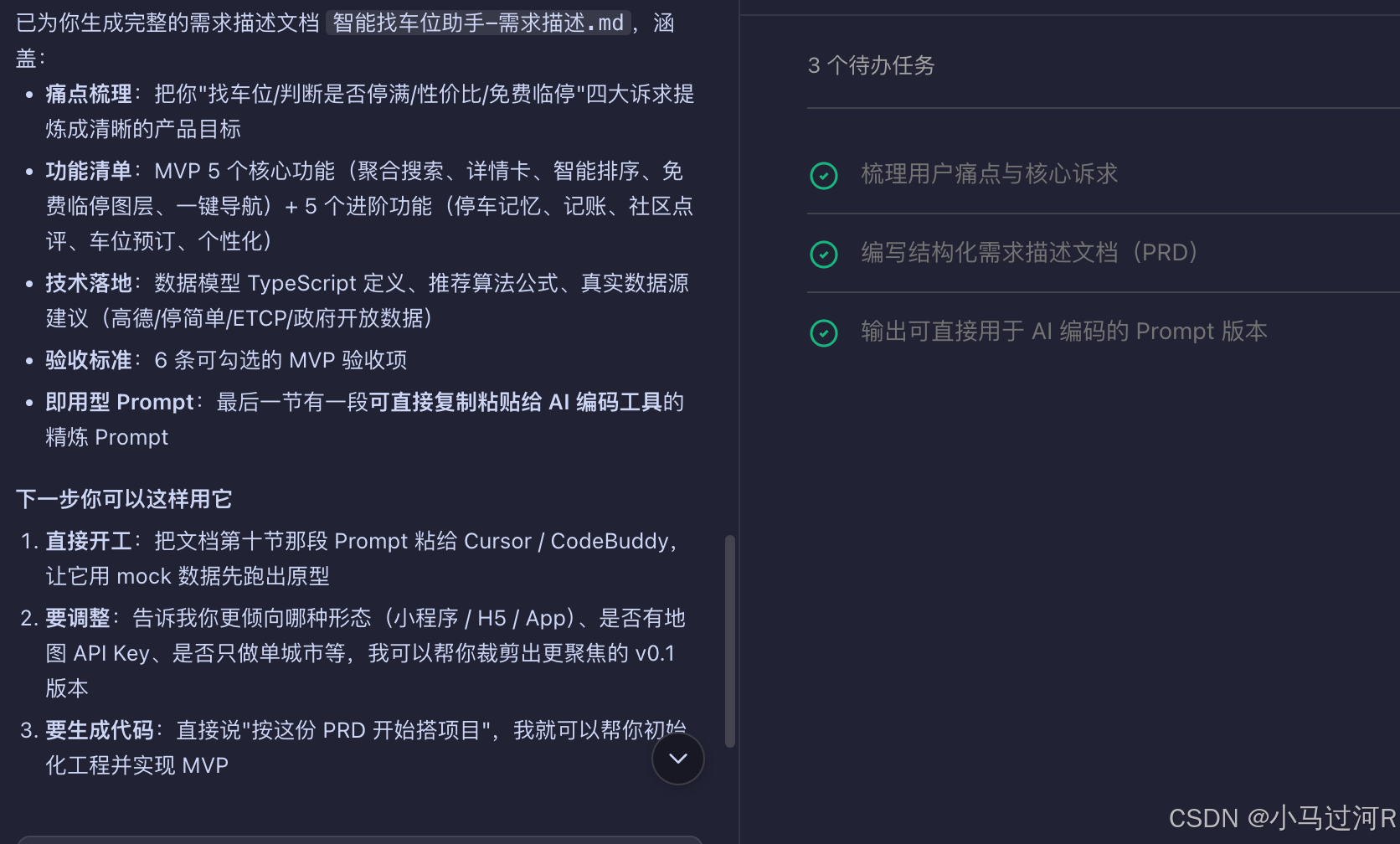 从一句话需求「出门找不到停车位 / 不知道哪个停车场实惠好停 / 希望知道周边免费临停」出发,两小时内从 0 交付一个可运行的 H5 原型。