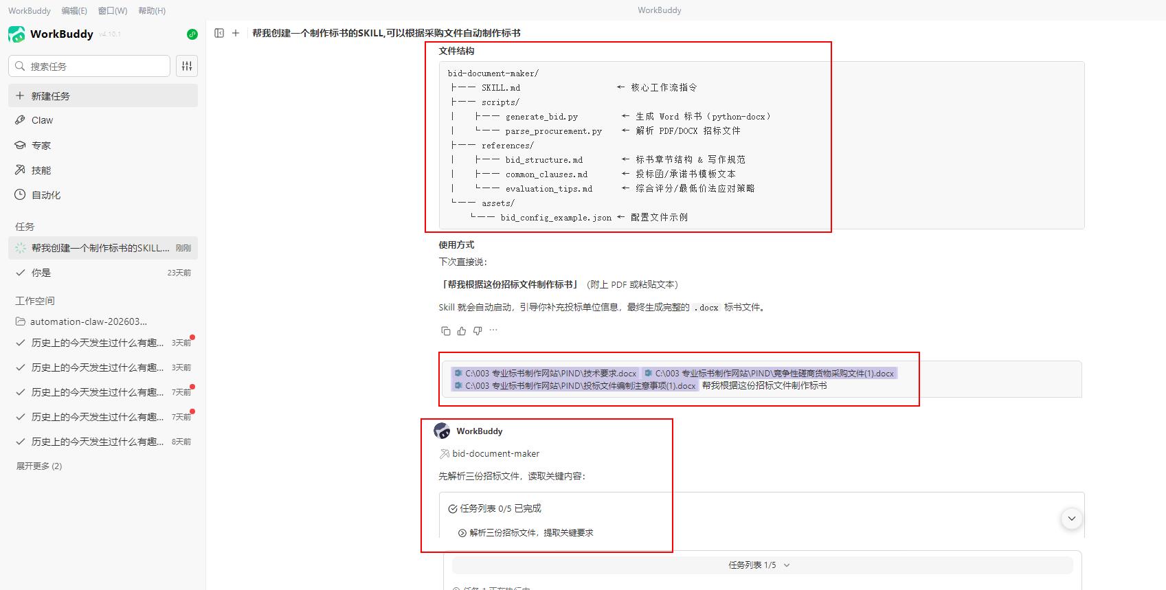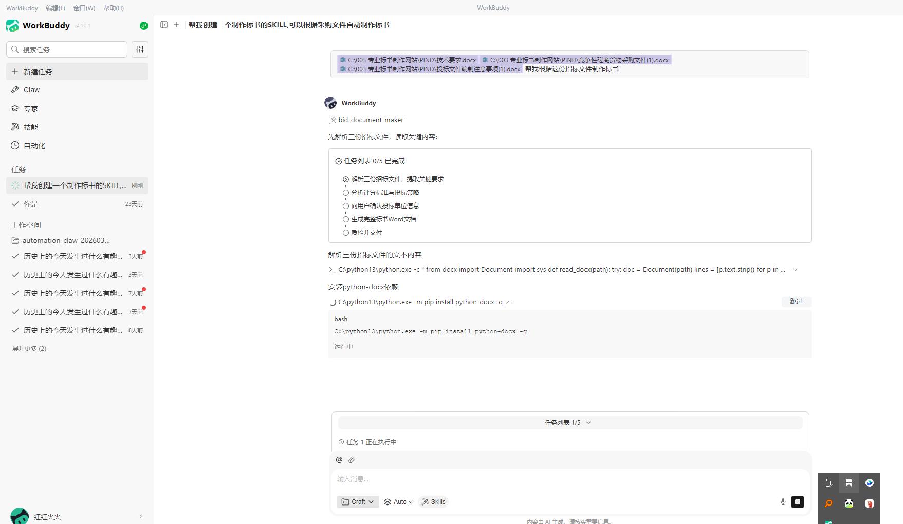 我已经把「bid-document-maker」Skill打包成了一个可分发的zip文件,任何人都可以安装使用。如果你也经常需要做标书,或者想把某个重复性工作流自动化,欢迎留言交流。