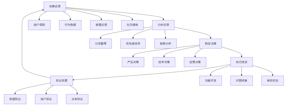反馈闭环是指收集用户反馈、分析反馈、采取行动、验证效果的循环过程。反馈闭环的价值包括: