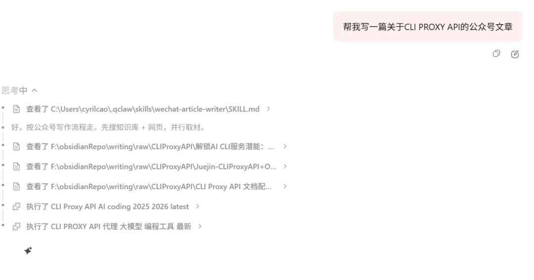 现在:QClaw 直接从你的知识库里提取相关素材,帮你: