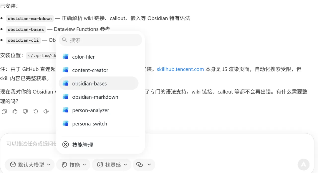 在https://skillhub.tencent.com/中找到并安装obsitian skill