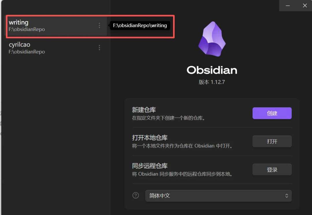 F:\obsidianRepo\writing 为你的根目录