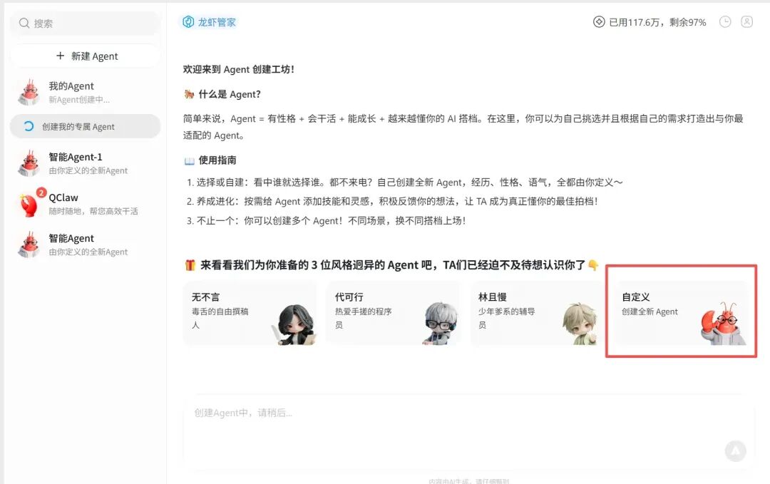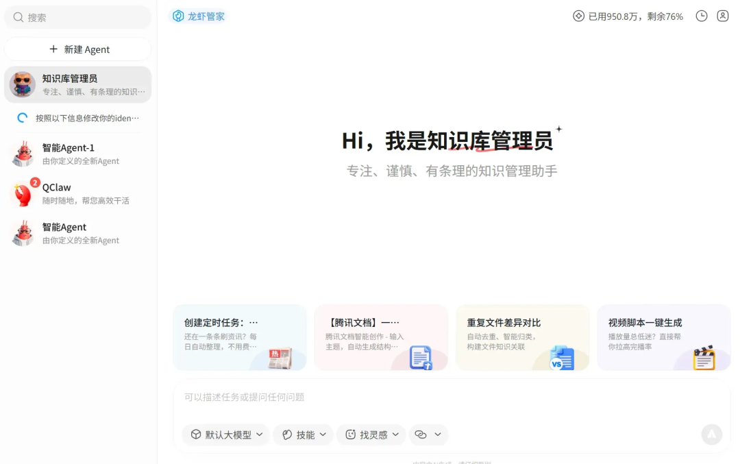 你不需要懂代码,不需要学复杂的配置。就像使唤一个得力的助手一样——你需要什么,说出来,它帮你做。现在我们动手配置一个知识库管理员 agent。