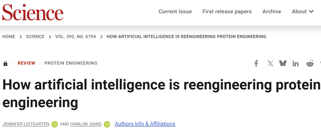 Jennifer Listgarten, Hanlun Jiang ,How artificial intelligence is reengineering protein engineering.Science392,159-166(2026).