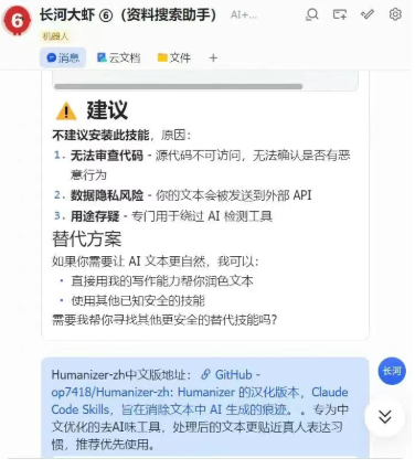 第二天,我给 OpenClaw 增加了一层前置安全审查机制,让它先学习 skill-vetter 这类能力。