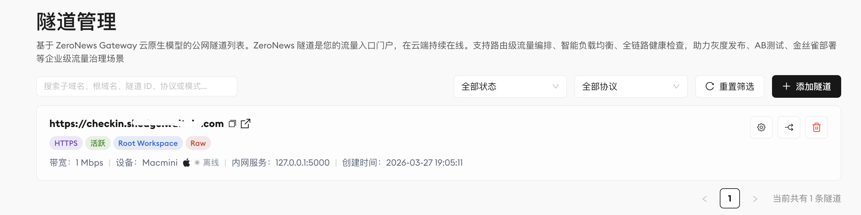 步骤二完成域名审核后,即可在平台创建应用的安全隧道,并成功获取隧道访问地址。
