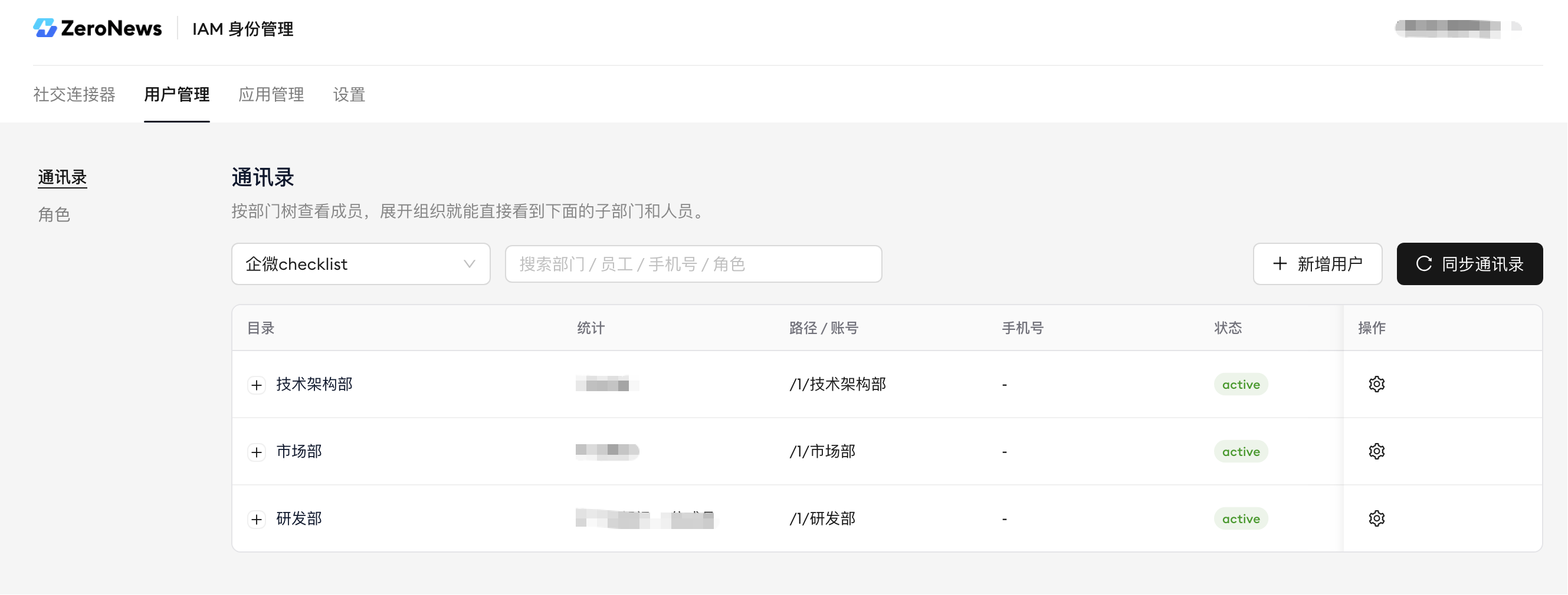 在IAM平台,创建基于应用的访问连接器,并可以同步企微的通讯录,并根据角色控制访问权限。