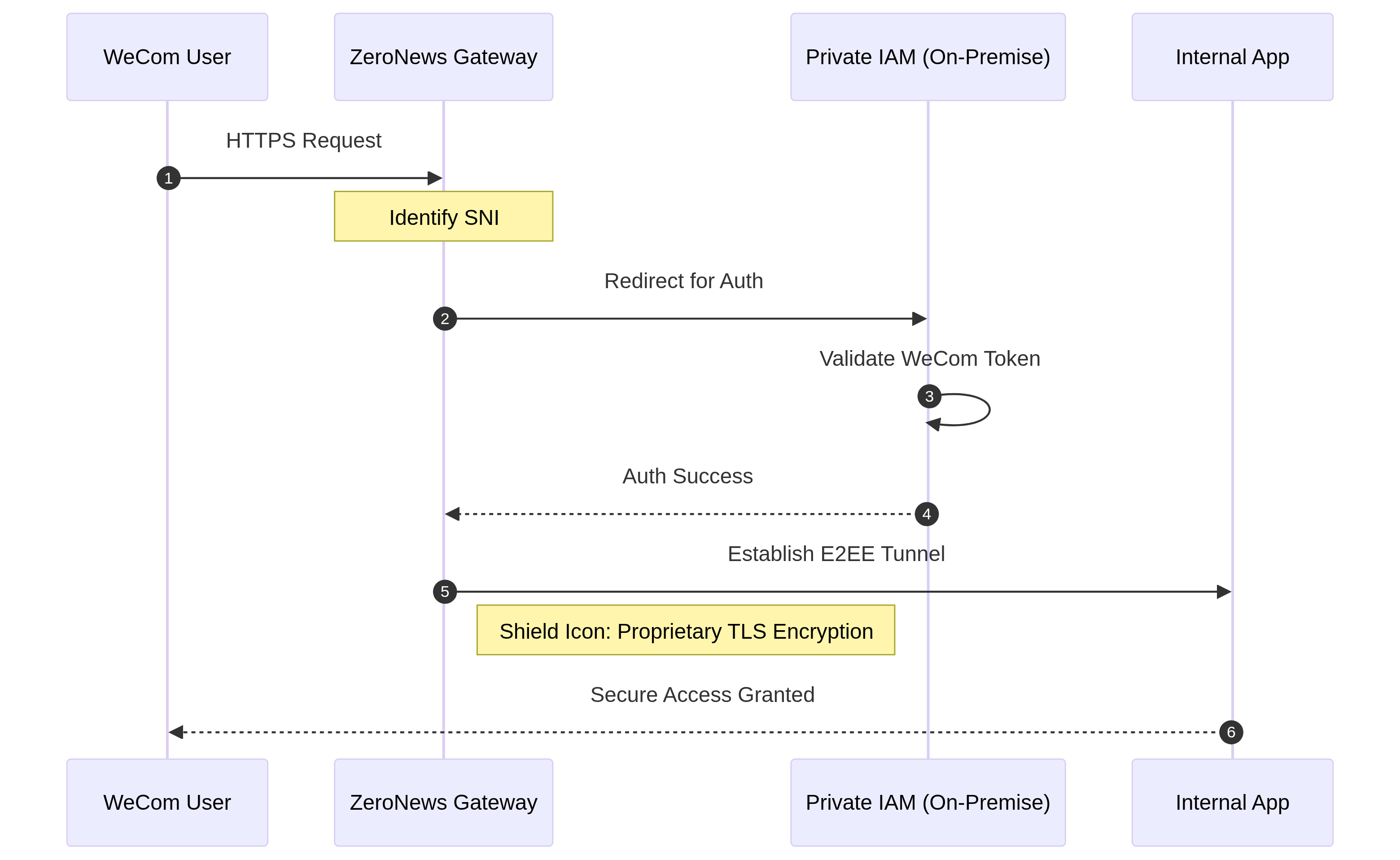 所有访问应用的用户,无需安装任何 APK 或证书。只需在企微中点击应用,网关会自动处理基于 SNI 的路径匹配与身份重定向。被授权的访问用户,在企微里感受不到任何多余步骤。