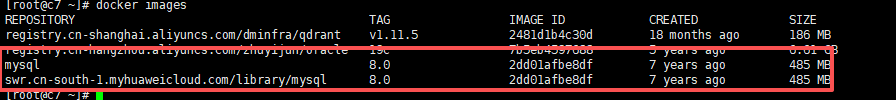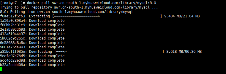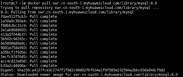 [root@c7 ~]# docker pull swr.cn-south-1.myhuaweicloud.com/library/mysql:8.0
