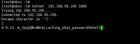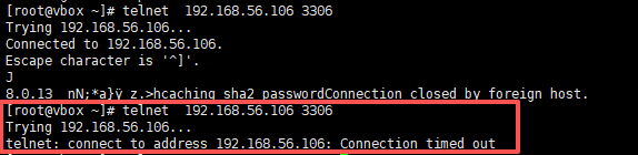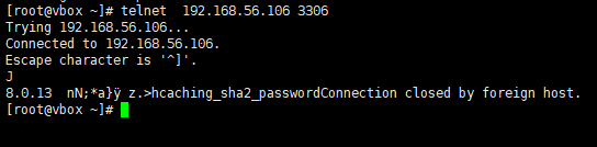 [root@vbox ~]# telnet 192.168.56.106 3306