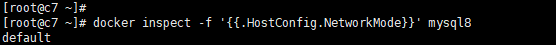 [root@c7 ~]# docker inspect -f '{{.HostConfig.NetworkMode}}' mysql8