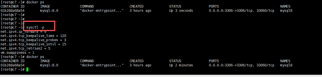 由于只处理过内核参数调整,执行sysctl -p操作,因此,我们再次做此操作。
