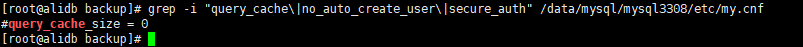 grep -i "query_cache\|no_auto_create_user\|secure_auth" /etc/my.cnf