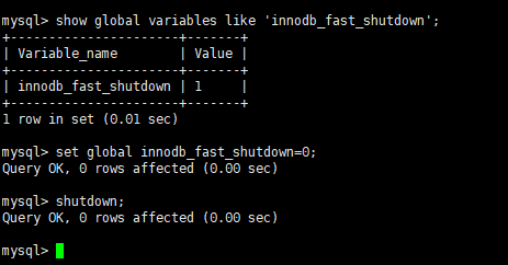 mysql> show global variables like 'innodb_fast_shutdown';