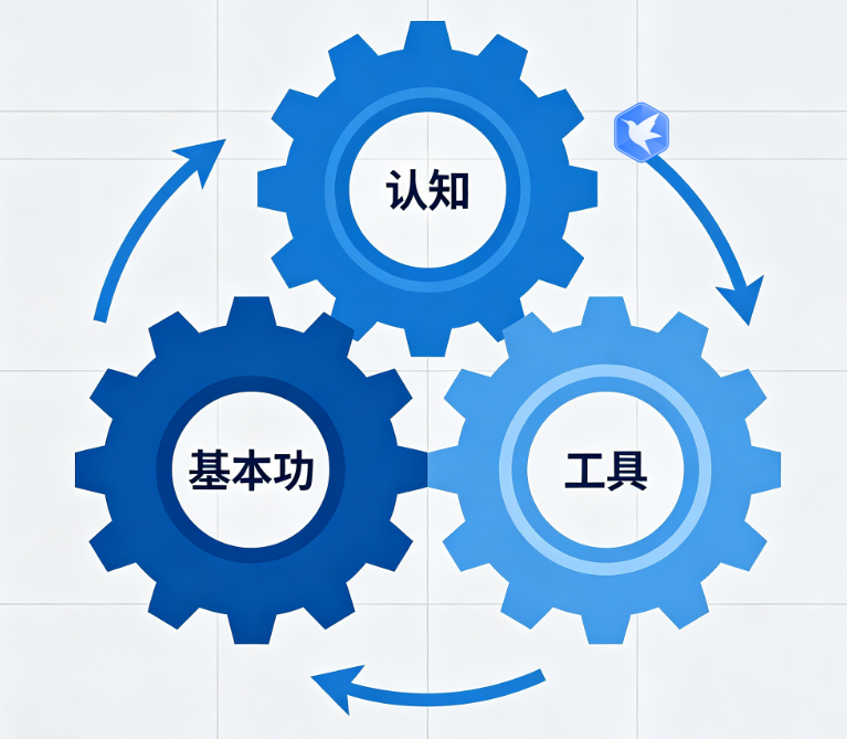 工具是认知和基本功的最终落脚点,它代表的是执行和效率。没有工具,一切都是纸上谈兵。光有想去远方的决心(认知)和一身驾驶绝技(基本功),却没有车,那也寸步难行。工具是我们能力的延伸,是把想法变成现实的桥梁。而且,不断尝试新工具,本身也能反过来拓宽我们的认知边界,让我们看到更多的可能性。