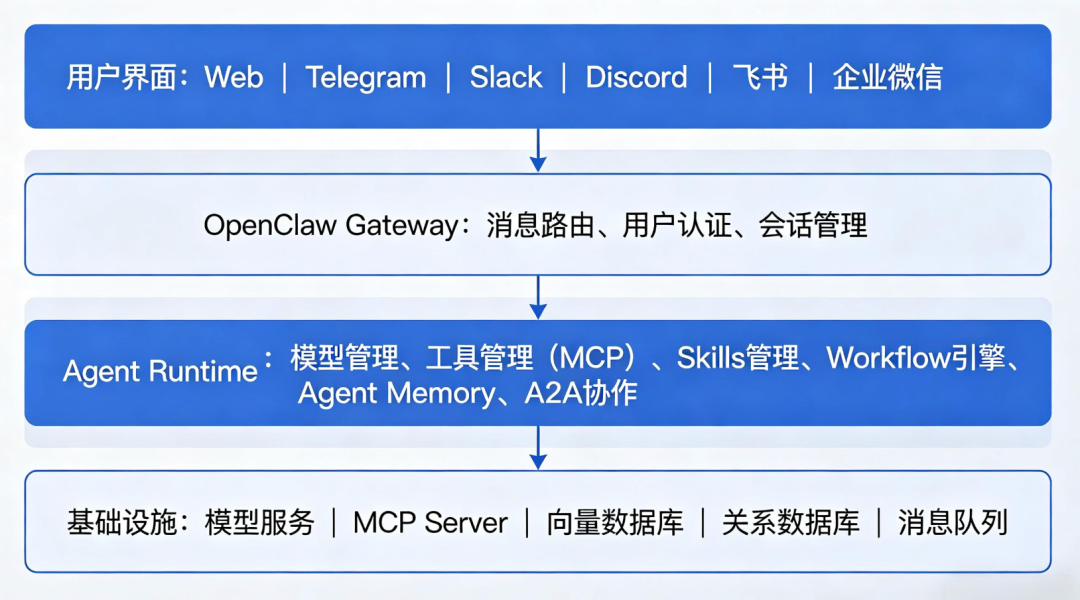 4. 跨平台生态兼容:制定统一的Agent、Skills、工具标准,支持不同厂商的Agent、Runtime平台接入,形成开放的生态体系。