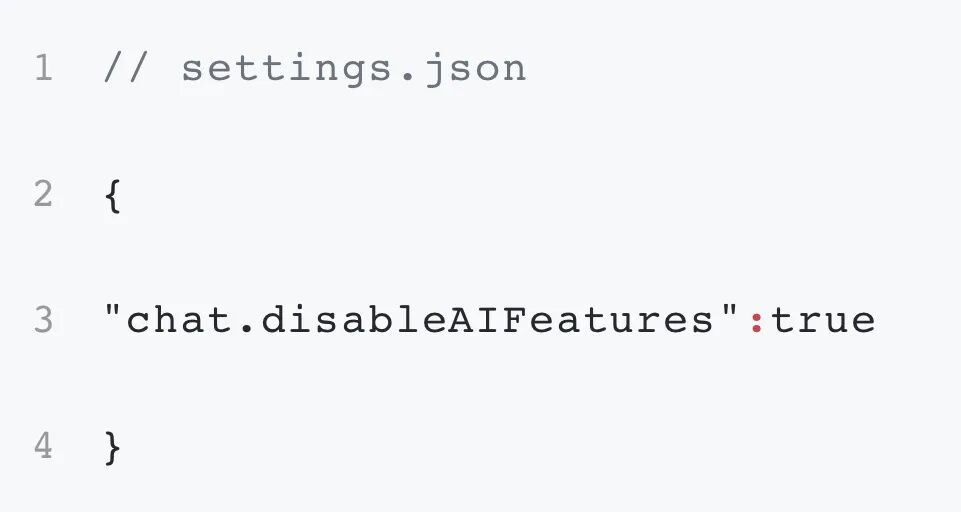 设置后,所有 AI 相关功能(聊天、内联建议、Agent)都会隐藏。