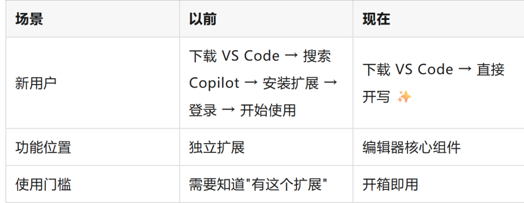 VS Code 把 Copilot 内置,标志着AI 编程从"可选插件"进入"核心功能"时代。