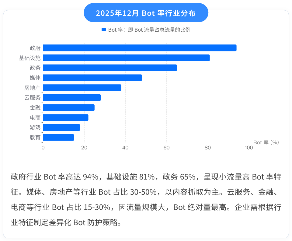 报告还揭示了一个行业差异:政务类网站的Bot率最高,媒体和内容类站点紧随其后。如果你运营的是内容型站点,被AI爬虫覆盖的概率更高。