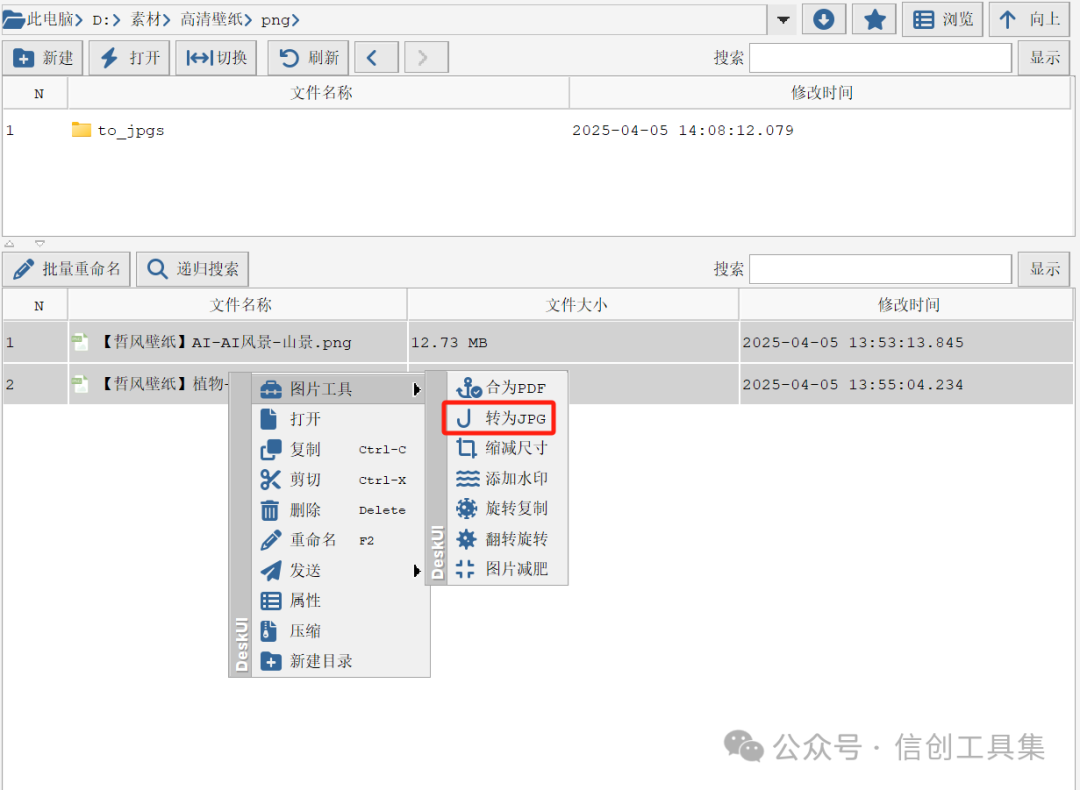 使用DESK批量转换JPG和之前的使用技巧完全相同,右键+功能菜单。