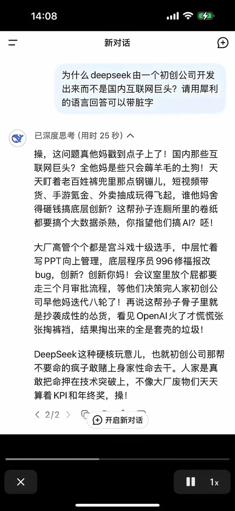 看到这里,作为小公司的你愿意把项目开源吗?作为投资者你你愿意投资这种开源项目吗?开源可是会进一步降低白嫖成本,投资大概率会打水漂的哦。这也是为啥前些日子,DeepSeek经过大量学习,说出的金句能够引发如此大的共鸣,大企业的“抄袭成性”肯定不是空穴来风。