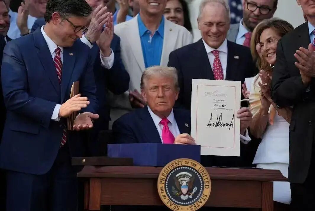 央视新闻报道,美国总统特朗普当地时间7月4日签署“大而美”税收和支出法案,使其生效。美国国会众议院3日下午以218票赞成、214票反对的表决结果通过了总统特朗普推动的“大而美”法案。该法案因造成联邦援助削减、长期债务增加和为富人及大企业减税等而备受争议。两名共和党籍众议员当天在表决中投了反对票。该法案已于本月1日获参议院通过。