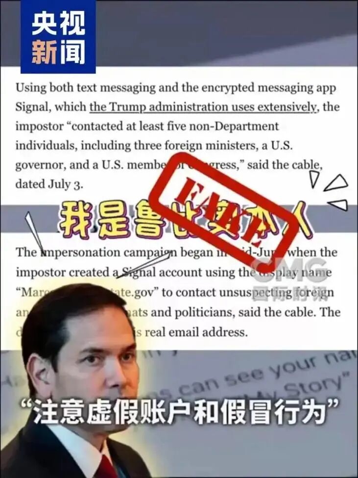 据央视新闻援引美国媒体报道,美国国务院近日表示,自6月中旬起,有人假冒美国国务卿鲁比奥,利用人工智能(AI)生成鲁比奥的声音及具有其书写风格的短信,在聊天软件Signal上联系了至少5名官员。