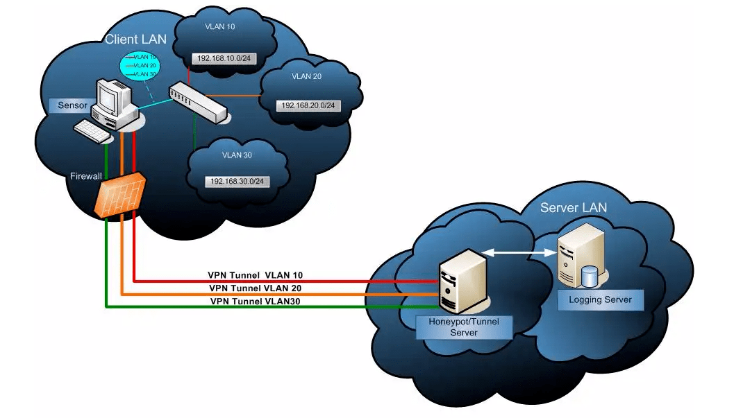 流量范围可覆盖客户端的全部网络活动(或指定网段),所有符合规则的流量都会通过 VPN 隧道加密传输。