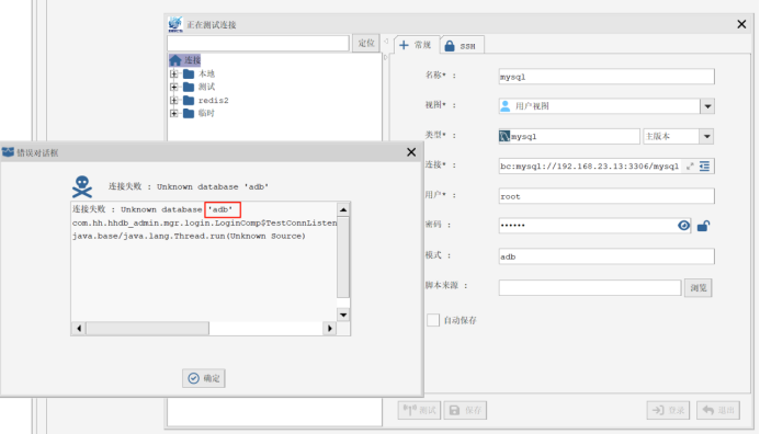 主要原因是Mysql的数据库名称是可以有大小写的。上图提示是没有错误的,adb的确不存在,但是Adb是存在的,需要按照如下的方式进行配置: