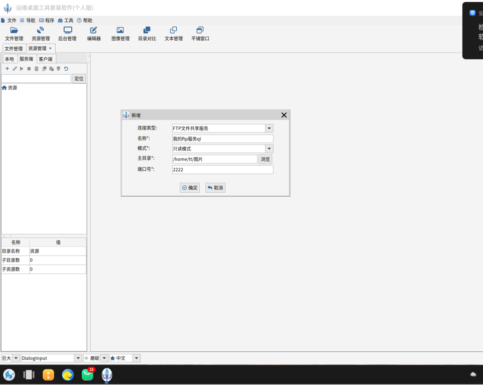 使用DESK创建FTP,就简单填写一下如上对话框信息,然后启动就完工了。特别值得注意的是DESK的使用环境,无论桌面操作系统还是服务操作系统,无论是Arm或者龙芯,所有操作完全一样,这种通用性又能进一步降低学习成本。