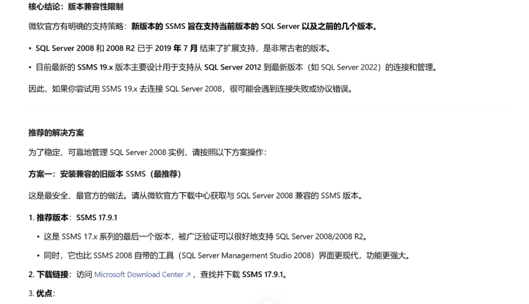 尽管大家可能觉得非常奇怪,SqlServer2008,2005甚至2000这种连最新硬件和操作系统都跑不起来的老古董竟然会还大量存在,但这就是现实。对于这种系统,最新版本的SqlServer自带管理工具都连接不上这些数据库,必须回退到老一点的版本,因此管理起来好麻烦。