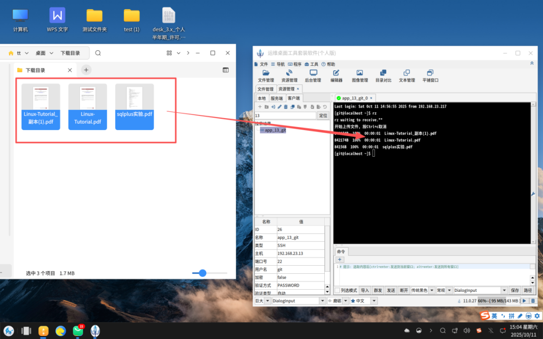 注意:DESK还支持把本地文件拖拽到终端窗口如下图所示: