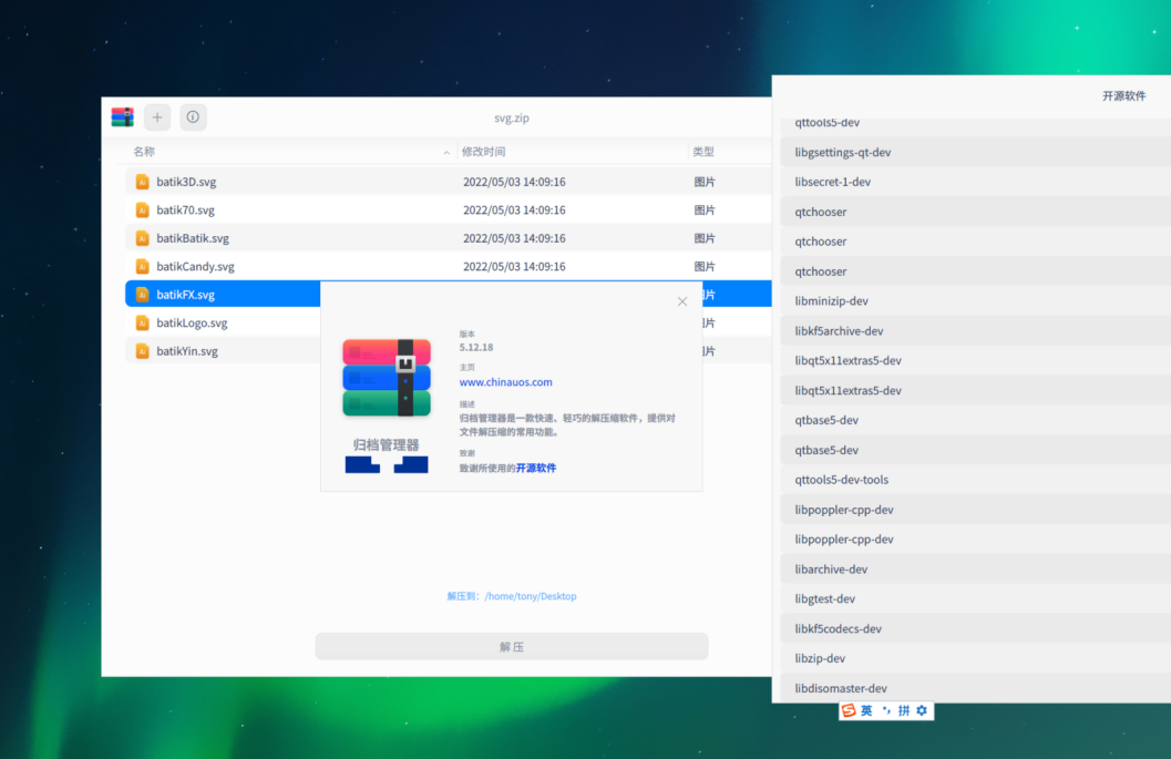 统信的压缩软件支持的格式和麒麟的一样多。而且没有麒麟工具那种不能拖拽的问题。从其帮助上看,应该是原创的。因此,真心为统信操作系统点个大大大大的赞。